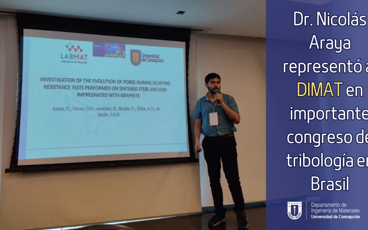 El Dr. Nicolás Araya, jefe de carrera del Departamento de Ingeniería de Materiales de la Universidad de Concepción, fue uno de los expositores del evento, en donde presentó su trabajo “Investigation of the evolution of pores during scuffing resistance tests performed on sintered steel vacuum impregnated with graphite”.