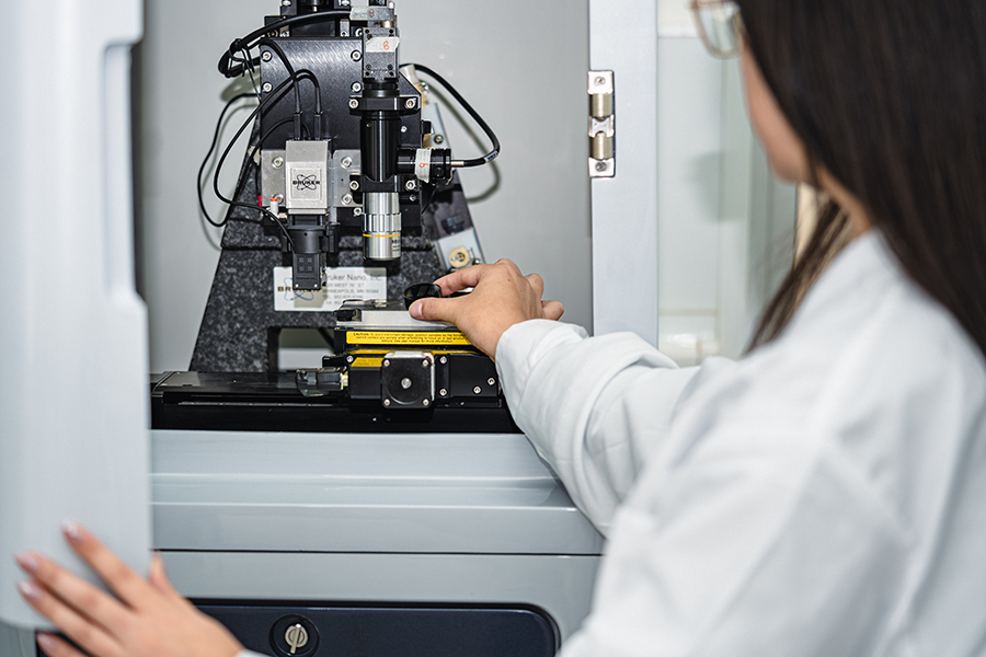 Este laboratorio se dedica a evaluar el comportamiento mecánico de diversos materiales bajo condiciones variables de fuerza y temperatura. Realiza ensayos de tracción, compresión y flexión para determinar su desempeño en situaciones reales. Además, analiza la dureza en escalas macro, micro y nano, permitiendo comprender la respuesta de los materiales a cargas e impactos localizados. Los datos obtenidos son esenciales para el desarrollo de materiales avanzados utilizados en sectores estratégicos para Chile, como la construcción, energía, minería, procesos industriales, defensa y transporte, donde se requieren soluciones de alto rendimiento capaces de operar en entornos exigentes.